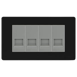 BG Screwless Matt Black 4 Gang RJ11 Telephone Socket Euro Module - Grey Insert
