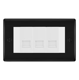 BG Screwless Matt Black 3 Gang RJ11 Telephone Socket Euro Module - White Insert