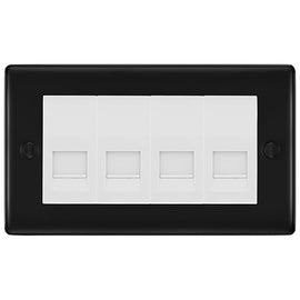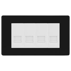 BG Screwless Matt Black 4 Gang RJ11 Telephone Socket Euro Module - White Insert