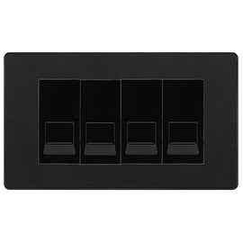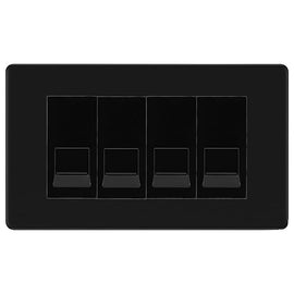 BG Screwless Matt Black 4 Gang RJ11 Telephone Socket Euro Module - Black Insert