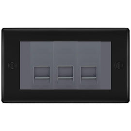 BG Screwless Matt Black 3 Gang RJ11 Telephone Socket Euro Module - Grey Insert