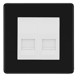 BG Screwless Matt Black Double RJ11 Telephone Socket FFBRJ112 - White Insert