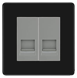 BG Screwless Matt Black Double RJ11 Telephone Socket FFBRJ112 - Grey Insert