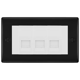 BG Nexus Matt Black 3 Gang RJ11 Telephone Socket Euro Module - Black Insert