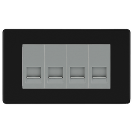 BG Screwless Matt Black 4 Gang IDC Secondary Telephone Socket - Grey Insert Used as a secondary telephone socket Integral Gasket for Moisture Protection Constructed from a 4G Euro Plate and secondary Telephone Modules Lig...