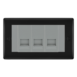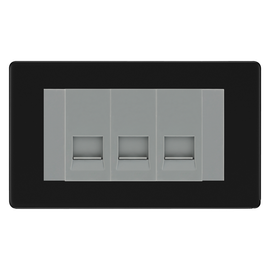 BG Screwless Matt Black 3 Gang RJ11 Telephone Socket Euro Module - Grey Insert RJ11 Telephone Socket: Suitable for standard analogue telephone line connections Euro Module System: RJ11 modules clip securely into the Euro pl...
