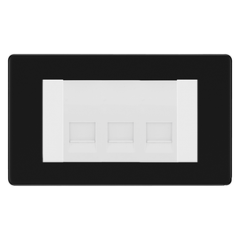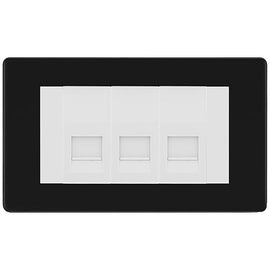 BG Screwless Matt Black 3 Gang RJ11 Telephone Socket Euro Module - White Insert RJ11 Telephone Socket: Suitable for standard analogue telephone line connections Euro Module System: RJ11 modules clip securely into the Euro p...