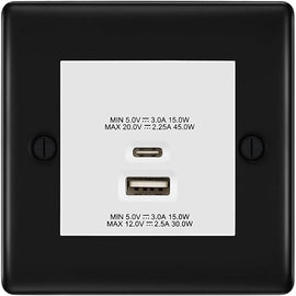 BG Screwless Matt Black 45W USB Wall Socket Euro Module USB-A & C - Black Insert