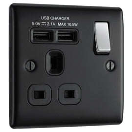 Nexus Metal Matt Black Single 13A 2x USB-A 2.1A Switched Socket