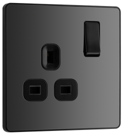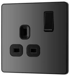 Black Chrome Evolve 1 Gang 13A Switched Socket Outlet - Black Insert