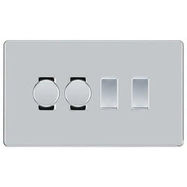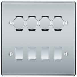 BG Nexus Polished Chrome 4 Gang Switch 2x Trailing Edge LED Dimmer 2x Intermediate Custom Grid Switch
