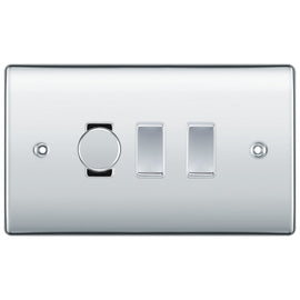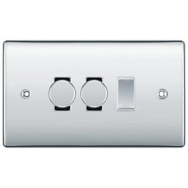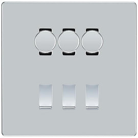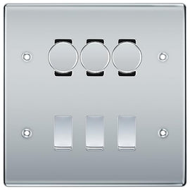BG Nexus Polished Chrome 3 Gang Switch 1x Trailing Edge LED Dimmer 2x Intermediate Custom Grid Switch
