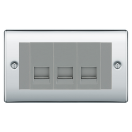 BG Nexus Polished Chrome 3 Gang Master Telephone Socket, Screw Terminal - Grey Insert Master telephone socket designed for primary telephone line connection Screw terminal connection for secure and reliable wiring Module c...