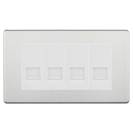 BG Screwless Polished Chrome 4 Gang RJ11 Telephone Socket Euro Module - White Insert