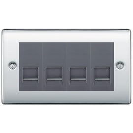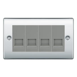 BG Nexus Polished Chrome 4 Gang RJ11 Telephone Socket Euro Module - Grey Insert
