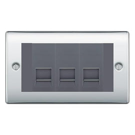 BG Nexus Polished Chrome 3 Gang IDC Secondary Telephone Socket - Grey Insert