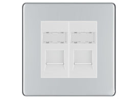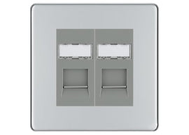 BG Screwless Polished Chrome 2 Gang RJ45 Data Socket FPCRJ452G Grey Inserts