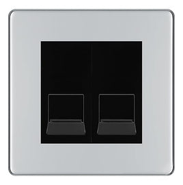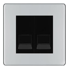 BG Screwless Polished Chrome Double RJ11 Telephone Socket FPCRJ112 - Black Insert