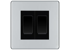 BG Polished Chrome 2 Gang Intermediate Light Switch Custom Grid – Black Insert