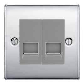 BG Nexus Polished Chrome Double RJ11 Telephone Socket NPCRJ112 - Grey Insert