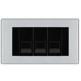 BG Screwless Polished Chrome 3 Gang RJ11 Telephone Socket Euro Module - Black Insert