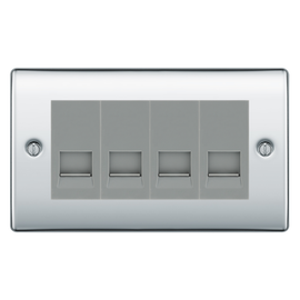 BG Nexus Polished Chrome 4 Gang Master Telephone Socket, Screw Terminal - Grey Insert