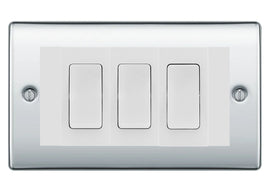 BG Nexus Polished Chrome 3 Gang Intermediate Light Switch Custom Grid - White Insert