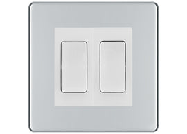 BG Nexus Polished Chrome 2 Gang 20AX 2-Way Switch Custom Grid – White Insert