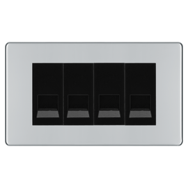 BG Screwless Polished Chrome 4 Gang Master Telephone Socket, Screw Terminal - Black Insert