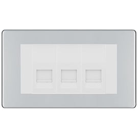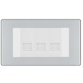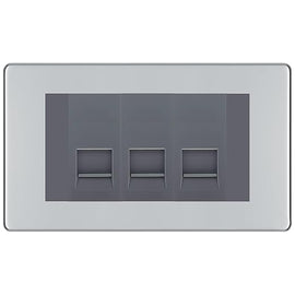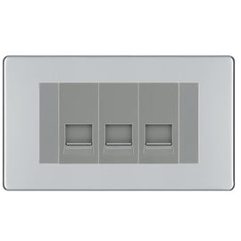 BG Screwless Polished Chrome 3 Gang RJ11 Telephone Socket Euro Module - Grey Insert
