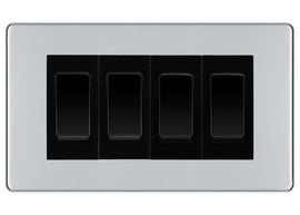 BG Polished Chrome Screwless 4 Gang Intermediate Light Switch Custom Grid - Black Insert