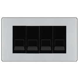 BG Screwless Polished Chrome 4 Gang RJ11 Telephone Socket Euro Module - Black Insert