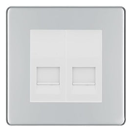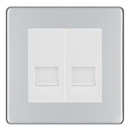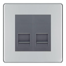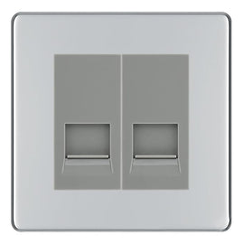 BG Screwless Polished Chrome Double RJ11 Telephone Socket FPCRJ112 - Grey Insert