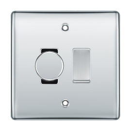 Fan Isolator Switch 3 Pole with Polished Chrome Finish - 10A AboutProduct: No visible plastic around switches Secure Screwless front Easy "clip on/off" plate Minimum back box depth: 16mm Sleek, flat profile Integral ga...