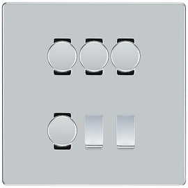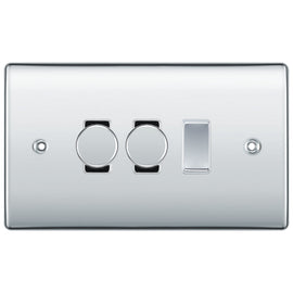 BG Nexus Polished Chrome 3 Gang Switch 2x Trailing Edge LED Dimmer 1x Intermediate Custom Grid Switch