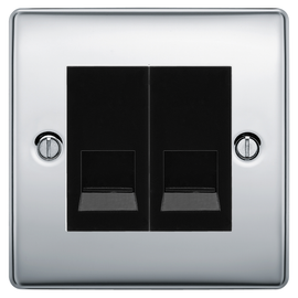 BG Nexus Polished Chrome Double Master Telephone Socket – Black Insert Master telephone euro module designed to feed extension sockets Installed at the point where the main telephone line enters the property IDC terminal c...