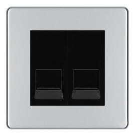 BG Screwless Polished Chrome Double Master Telephone Socket, Screw Terminal - Black Insert Master telephone socket designed for primary telephone line connection Screw terminal connection for secure and reliable wiring Mod...