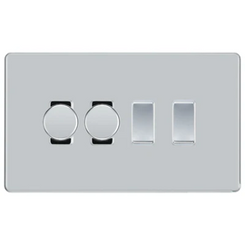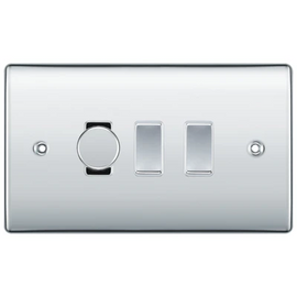 BG Nexus Polished Chrome Screwless Flatplate 2 Gang Switch 1x LED Dimmer 1x Rocker Custom Grid Light Switch