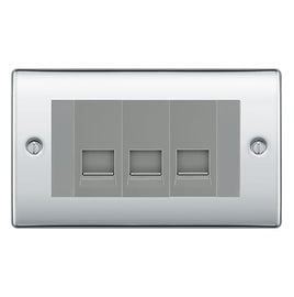 BG Nexus Polished Chrome 3 Gang RJ11 Telephone Socket Euro Module - Grey Insert