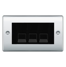 BG Nexus Polished Chrome 3 Gang IDC Secondary Telephone Socket - Black Insert