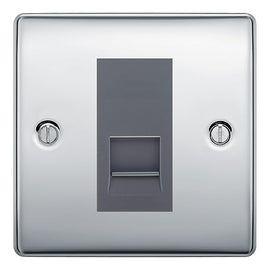 BG Screwless Polished Chrome Single IDC Secondary Telephone Socket - Grey Insert