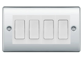 BG Nexus Polished Chrome 4 Gang Intermediate Light Switch Custom Grid - White Insert