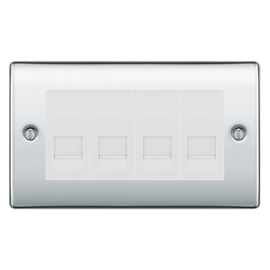 BG Nexus Polished Chrome 4 Gang Master Telephone Socket, Screw Terminal - White Insert