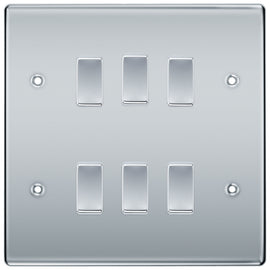 BG Polished Chrome 6 Gang 2 Way Custom Grid Light Switch with Back Box Included Please note that this switch will come in a grid format. You will be sent the following parts all supplied by BG; 1x 6 & 8 Gang Flush Mou...