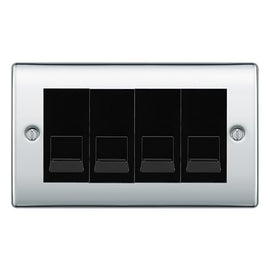 BG Nexus Polished Chrome 4 Gang RJ11 Telephone Socket Euro Module - Black Insert