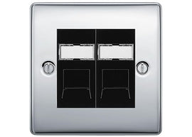 BG Nexus Metal Polished Chrome 2 Gang RJ45 Data Socket NPCRJ452B Black Inserts