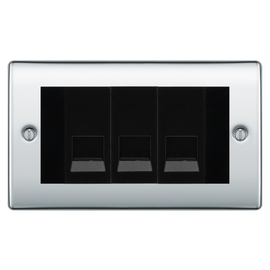 BG Nexus Polished Chrome 3 Gang Secondary Telephone Socket, Screw Terminal - Black Insert Designed for secondary telephone connections fed from a master socket Screw terminal connection ensures secure and reliable wiring I...
