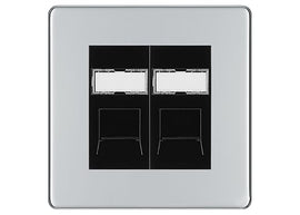 BG Screwless Polished Chrome 2 Gang RJ45 Data Socket FPCRJ452B Black Inserts