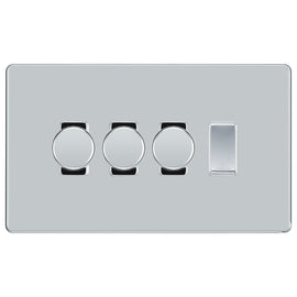 BG Nexus Polished Chrome 4 Gang Switch 3x Trailing Edge LED Dimmer 1x Intermediate Custom Grid Switch