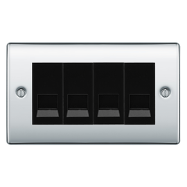 BG Nexus Polished Chrome 4 Gang Master Telephone Socket, Screw Terminal - Black Insert